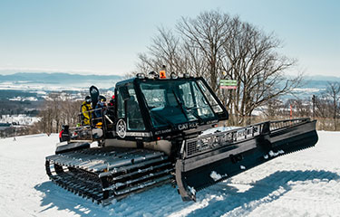 圧雪車(キャット)で、リフトがかかっていない手つかずのゲレンデへお連れします。