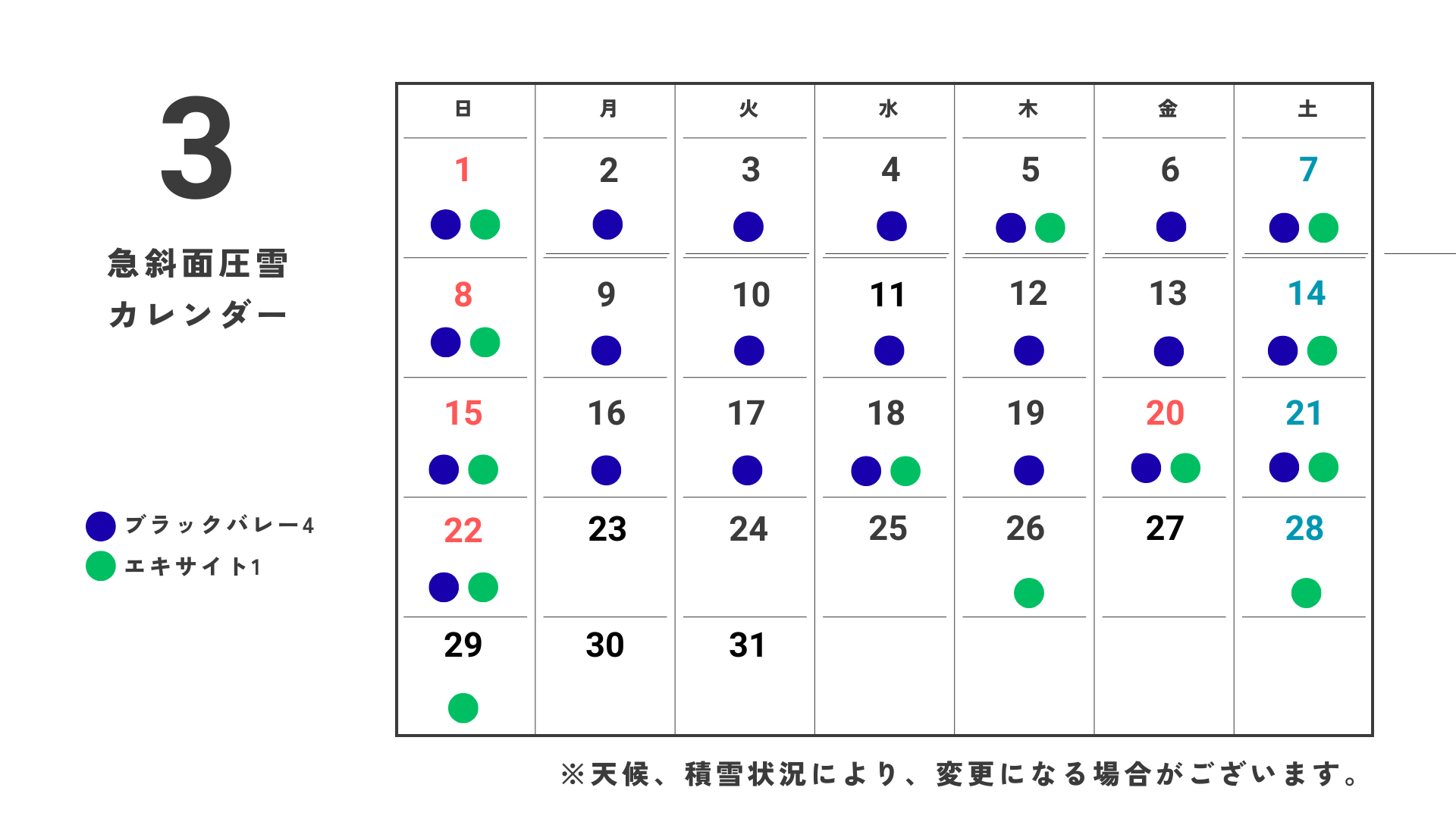 - 1/13〜3/1で3日後の降雪が30cm以上見込まれる場合に開催。