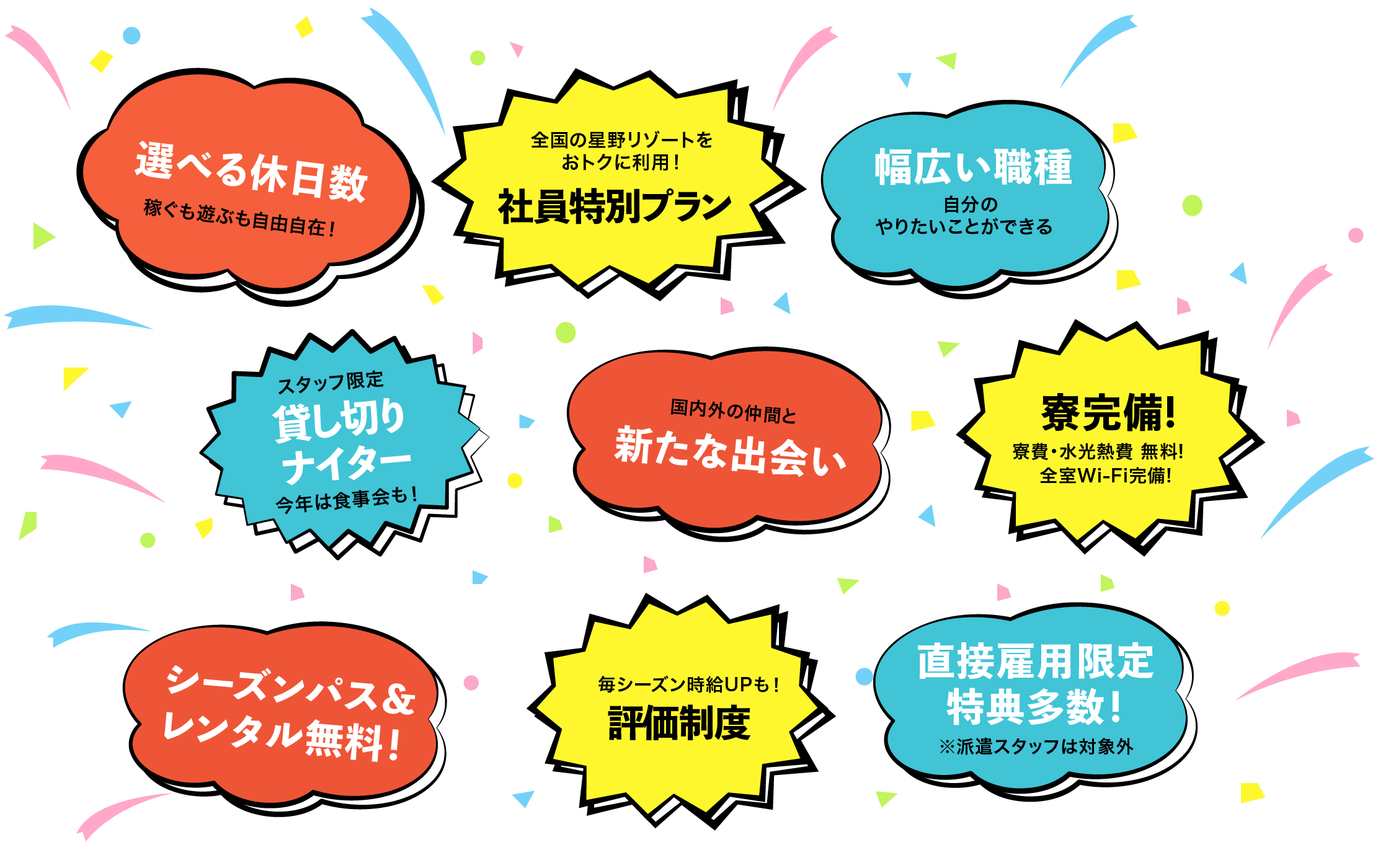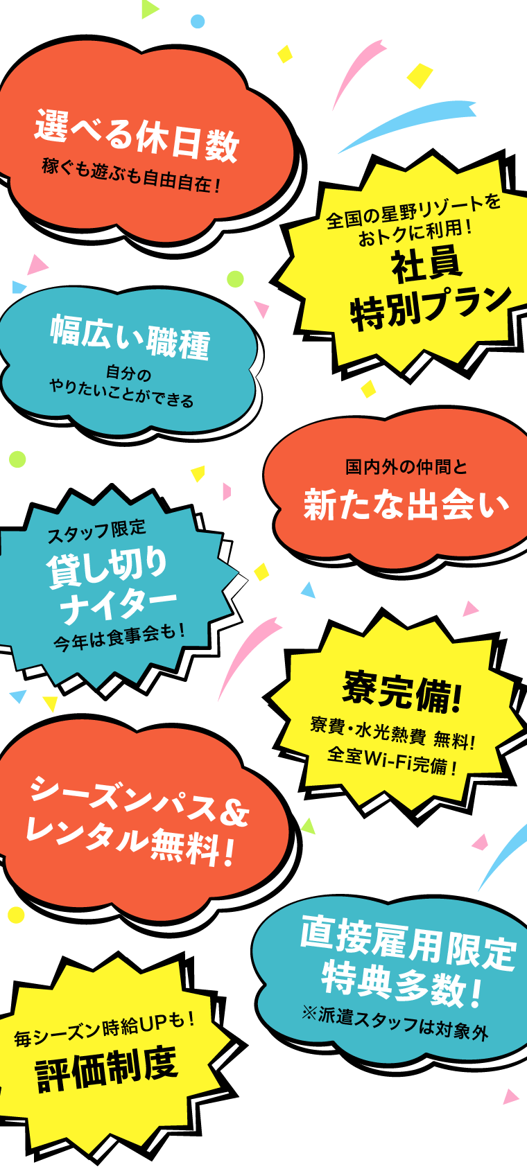 ※スキー・スノーボードインストラクターについては勤務形態が異なります。(詳細は各職種募集要項をご参照ください。)